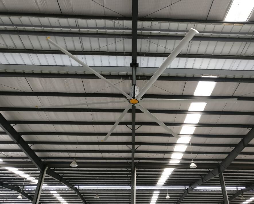 The wind blown from large industrial ceiling fan feels like natural breeze system,the wind speed is just the best cool feeling of human skin. Personnel can feel the temperature difference 5-8 degree, provide personnel a suitable working environment in hot summer,therefore improve the production efficiency.