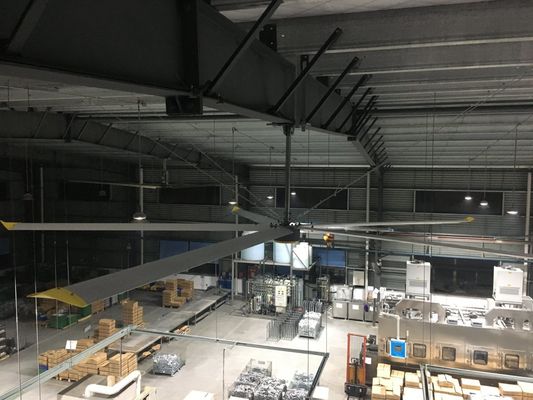 The wind blown from large industrial ceiling fan feels like natural breeze system,the wind speed is just the best cool feeling of human skin. Personnel can feel the temperature difference 5-8 degree, provide personnel a suitable working environment in hot summer,therefore improve the production efficiency.